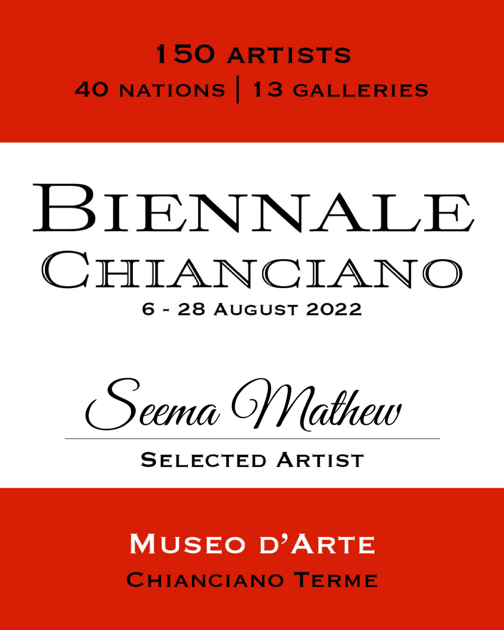 Truly honoured to have been selected as one of 150 artists to be represented at the 2022 Biennale Chianciano in the beautiful medieval town of Chianciano Terme, Tuscany, Italy Official Website